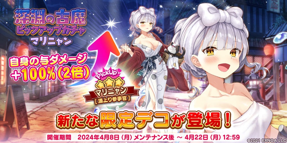『救世少女 メシアガール おかわり』報酬付きランキングイベント「深淵の古魔」スタート魅惑のバスタオル姿★3マリニャン[湯上り参事官]が限定登場!