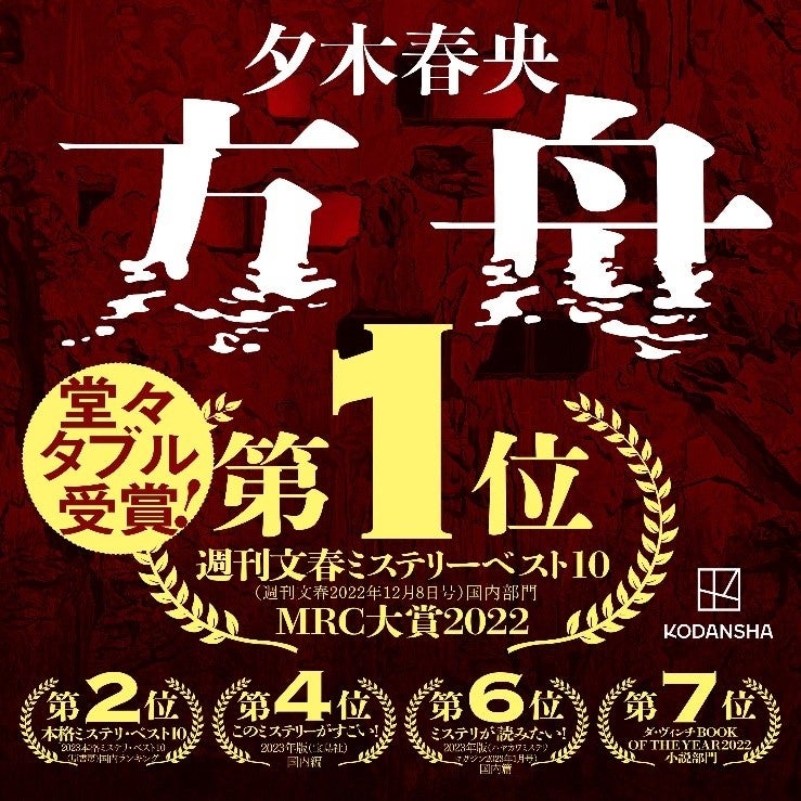 発売後に完売店が続出した夕木春央『方舟』、「週刊文春ミステリーベスト10」&「MRC大賞」で1位を獲得!他ミステリーランキングも席捲中!!