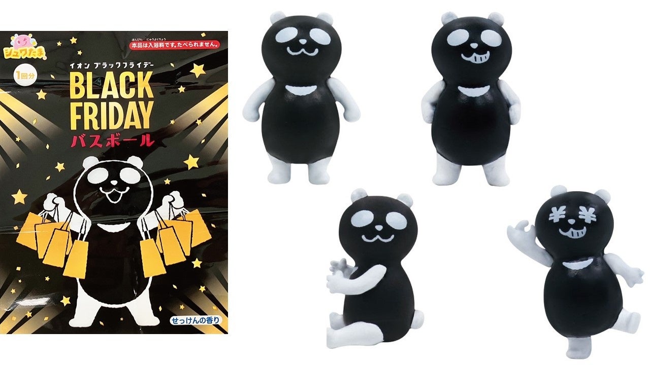 ブラックフライデーオリジナル パンダデザインの入浴剤です。ブラックパンダのマスコットは全部で4種類が登場します。