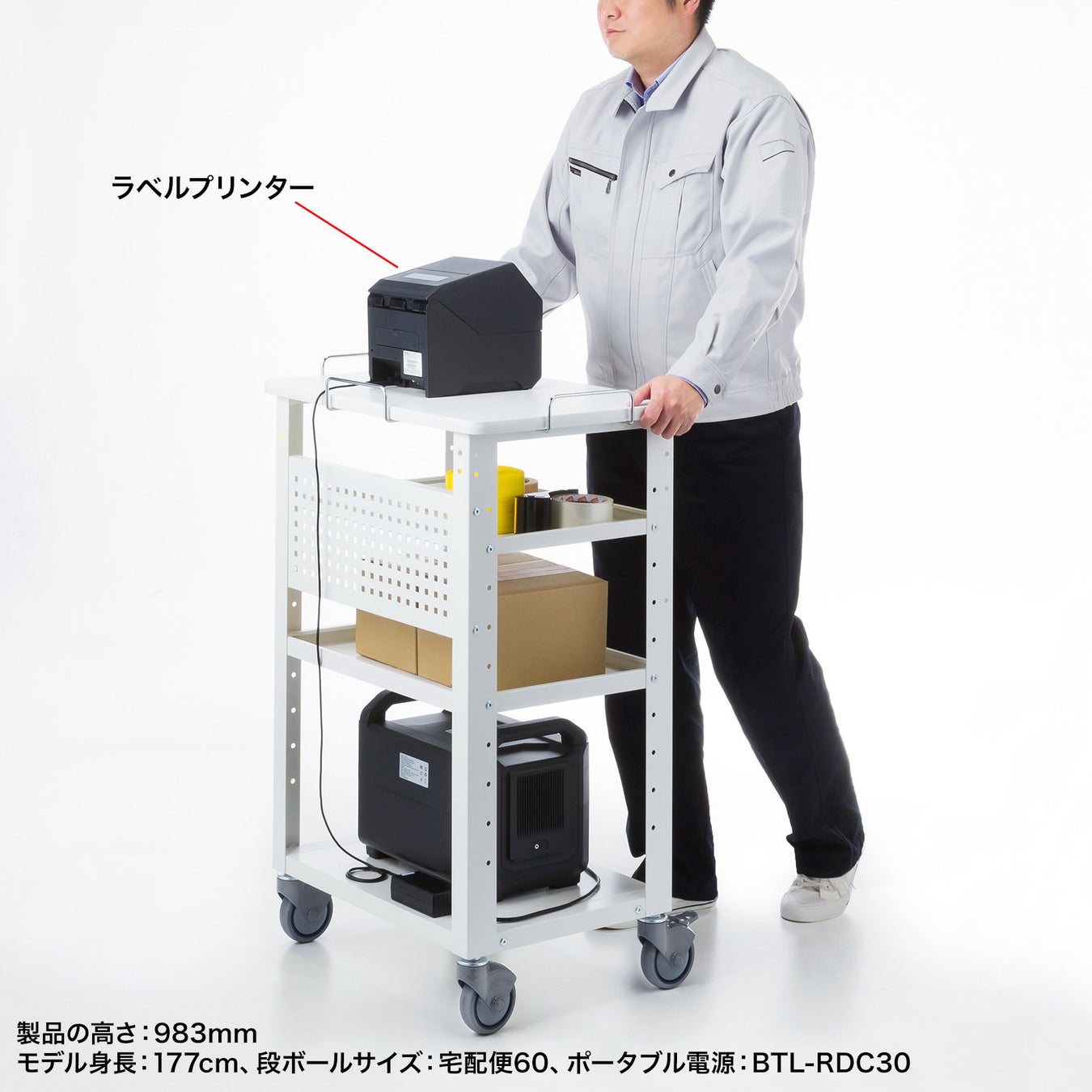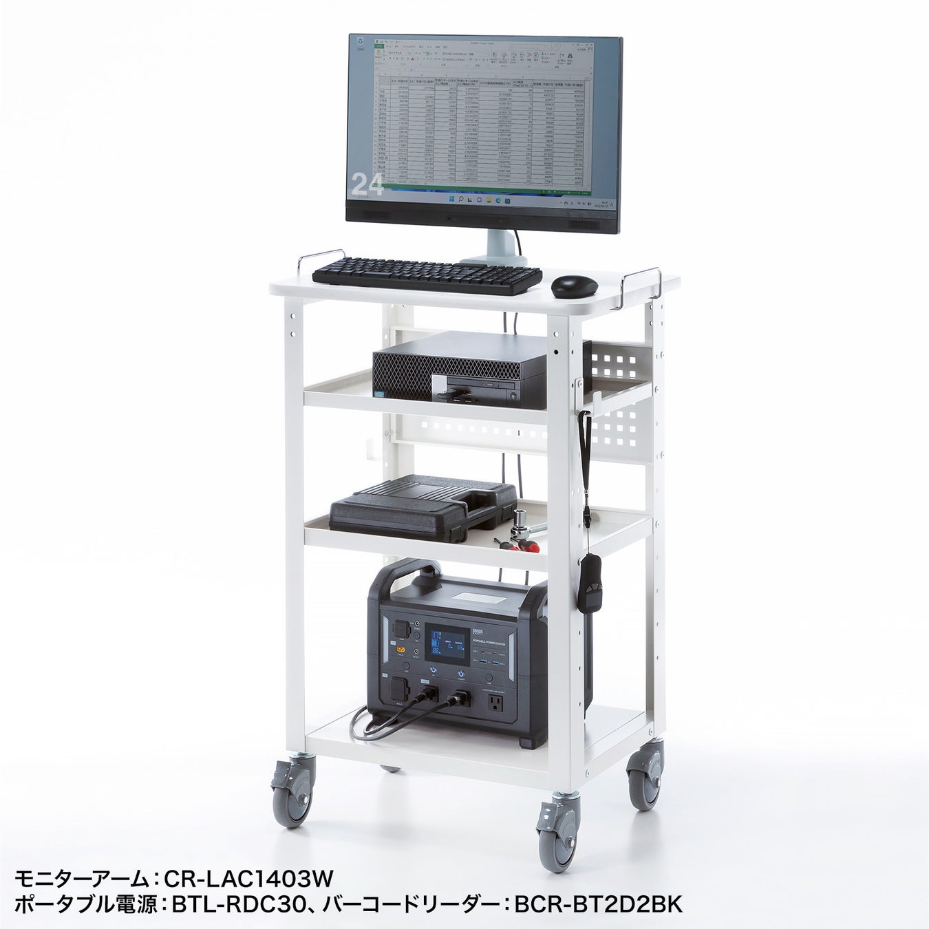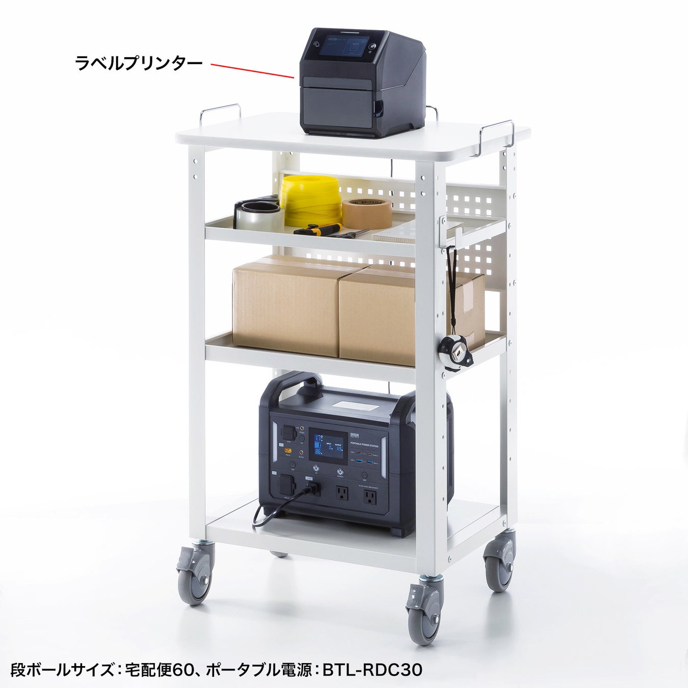 ラベルプリンターや計測機器用のカートとして使用できるマルチカートを発売