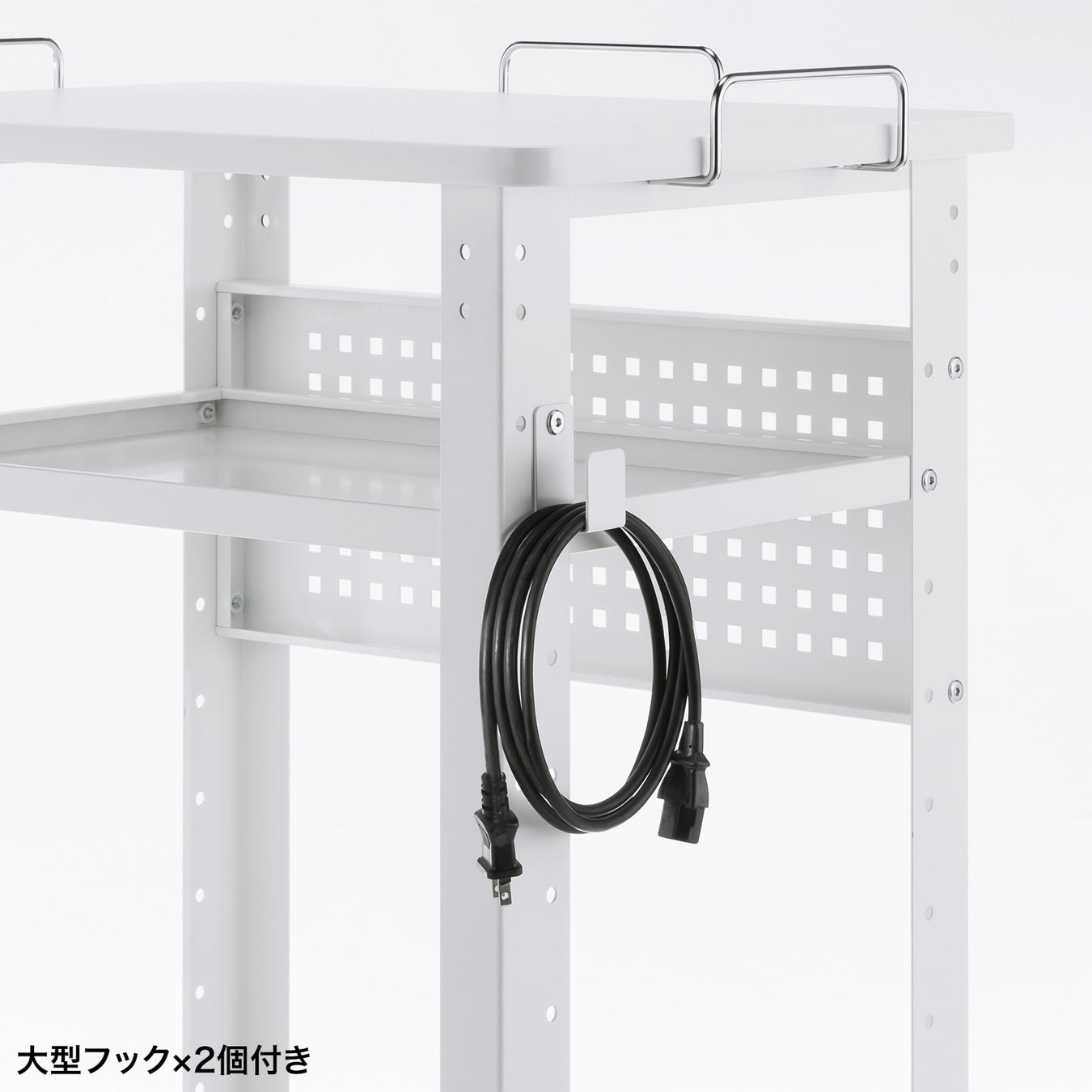 ケーブルなどを吊るせる大型フック2個付き