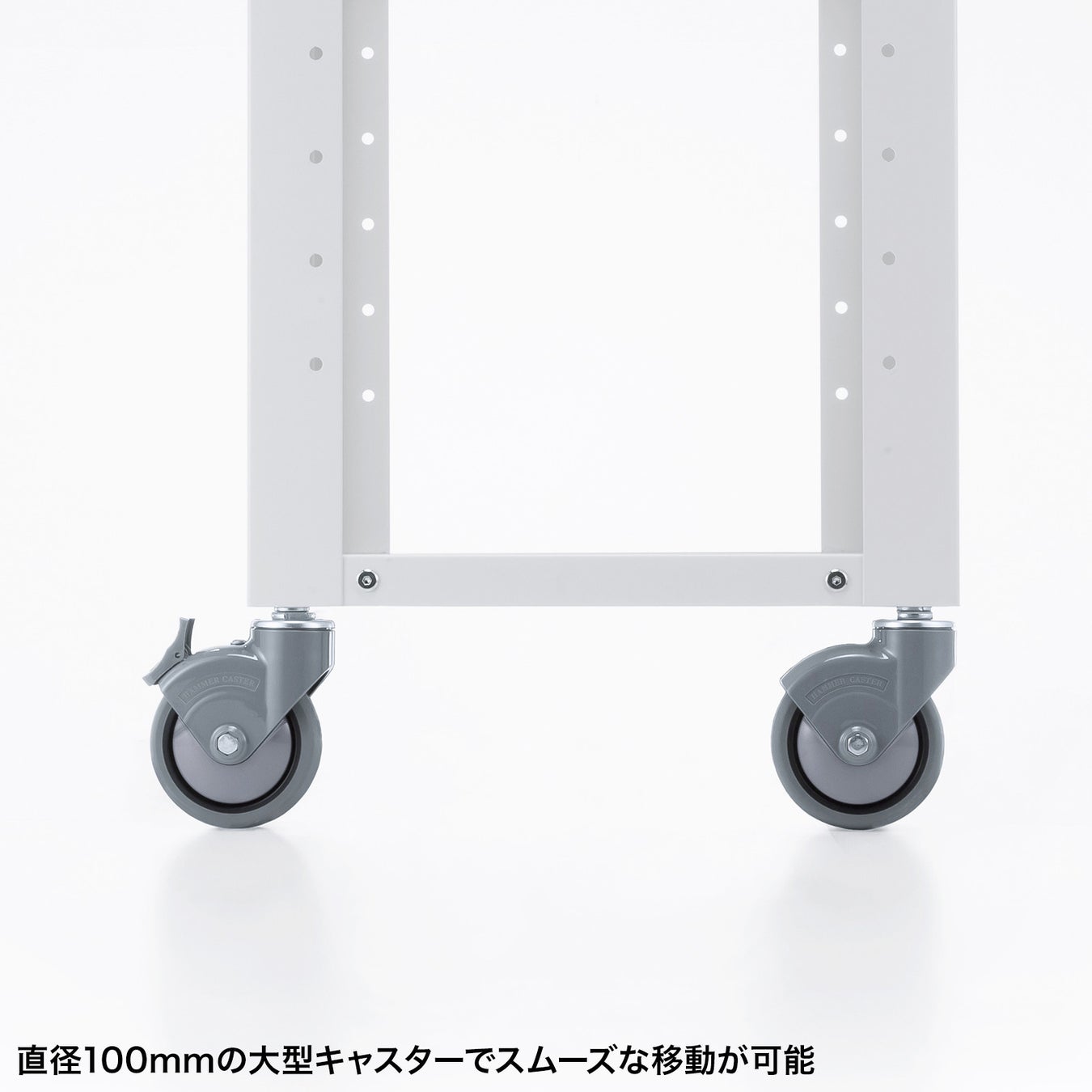 直径100mmの大型キャスター採用で、滑らかな移動が可能です。