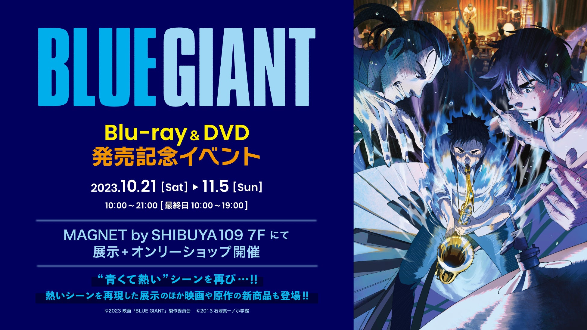 映画「BLUE GIANT」(原作:石塚真一)のBlu-ray / DVD販売開始に合わせ、MAGNET by SHIBUYA109 7Fにて発売記念イベントを開催!10月21日(土)~11月5日(日)まで開催中。入場無料です!!
