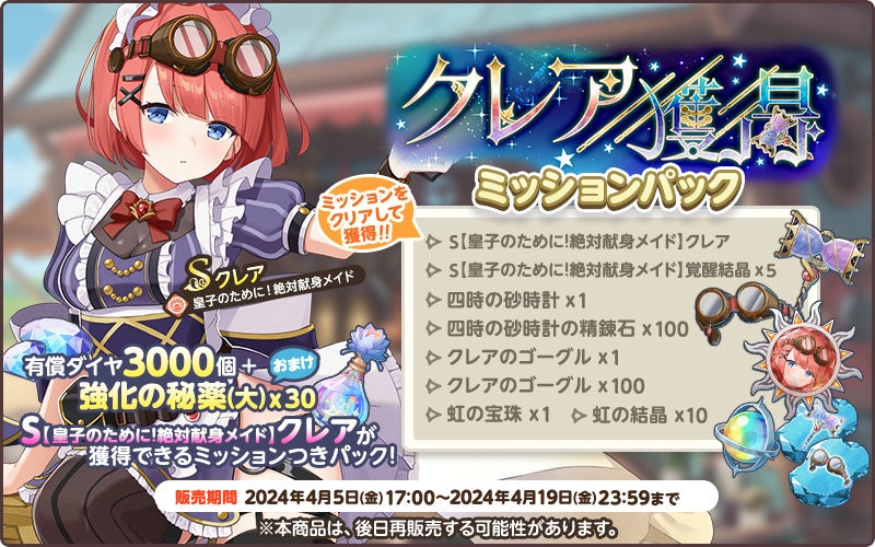 2024年4月5日(金)17:00より新キャラ獲得ミッションパック【Sクレア】の販売を開始致しました。