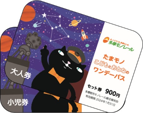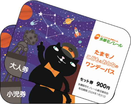 ※「たまモノこどもとおとなのワンデーパス」は、900円で多摩モノレール全線を1日自由に乗り降りできる小児(小学生)と大人(中学生以上)の乗車券各1枚のセット券です。通常の小児一日乗車券450円と大人一日乗車券890円の合計額1,340円と比較し、440円お得な乗車券です。