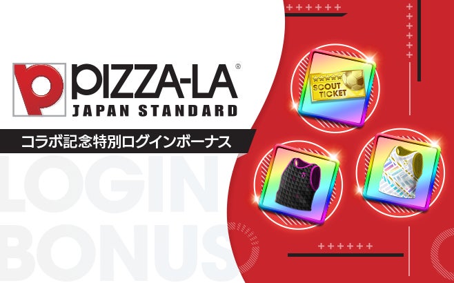 ミッションを達成すると、期間中1回限定で「PIZZA-LA」とのコラボ記念エンブレムや、選手の能力UPに使用できる各種金アクセサリーが獲得できます。
