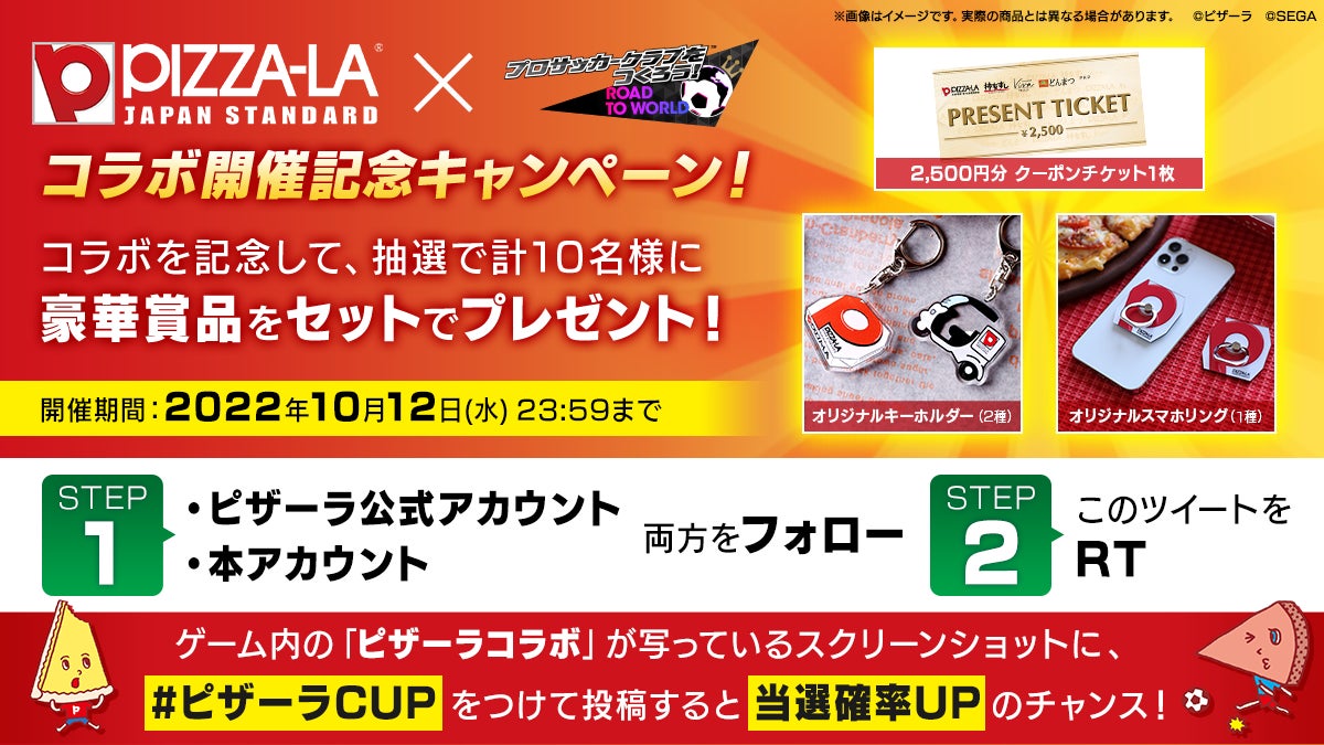 ◆「PIZZA-LA」×「サカつくRTW」コラボ記念!2つのTwitterキャンペーンを開催中