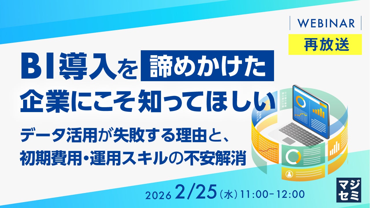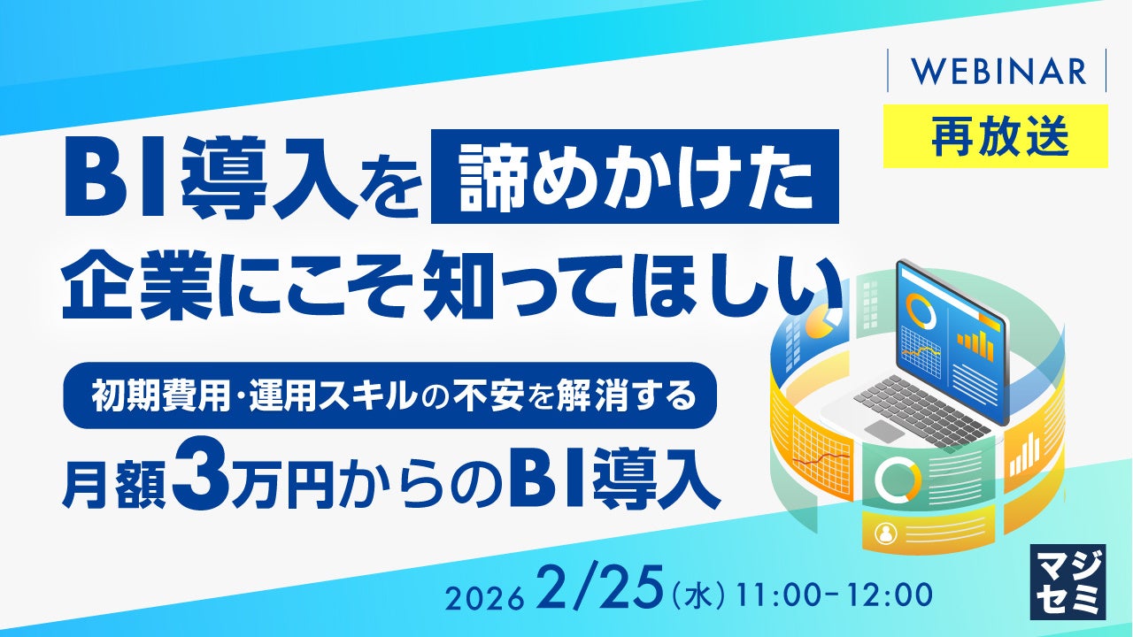 マジセミ株式会社は「【再放送】BI導入を「諦めかけた」企業にこそ知ってほしい」というテーマのウェビナーを開催します。