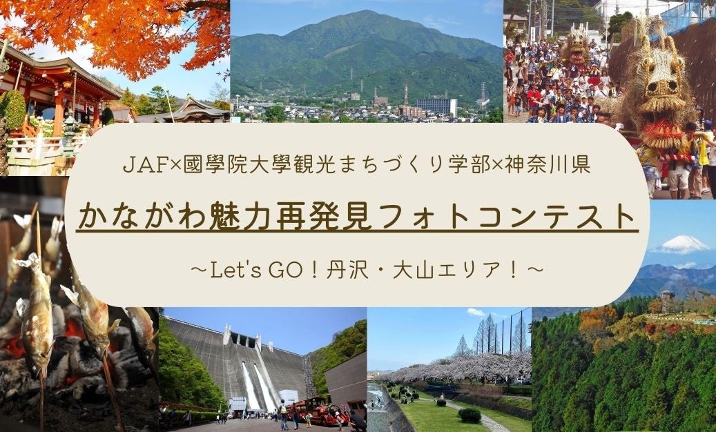 本コンテストは、JAF・國學院大學観光まちづくり学部・神奈川県観光課の3者による、産学官連携企画「みんなで神奈川のガイドブックを作ろう!」の一環としてスタートします。初年度となる2023年度は、神奈川県厚木市・秦野市・伊勢原市・愛川町・清川村の5市町村を対象エリアとして、あなただけが知っている風景や、記憶に残る景色、また行きたいと思う魅力あるスポットをユーザーから募集します。