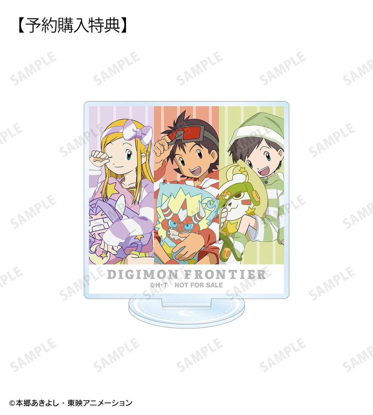 『デジモンフロンティア』の描き下ろしイラスト みんなでお泊まりパジャマver. トレーディングアクリルスタンドなどの受注を開始!!アニメ・漫画のオリジナルグッズを販売する「AMNIBUS」にて