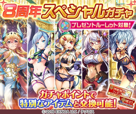 リリース8周年キャンペーンとして、毎日最高100連無料ガチャが当たるプレゼントルーレットを開催します!