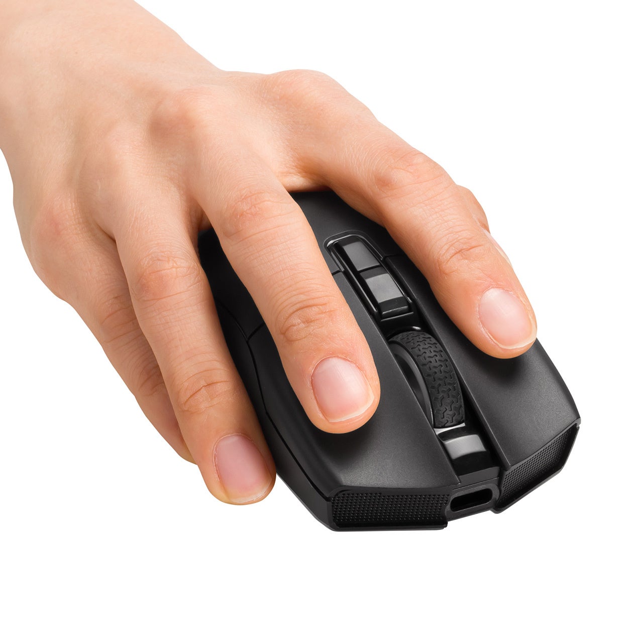 ゲーミング設計ながら手にフィットするサイズで、疲れにくいエルゴノミクス形状です。
