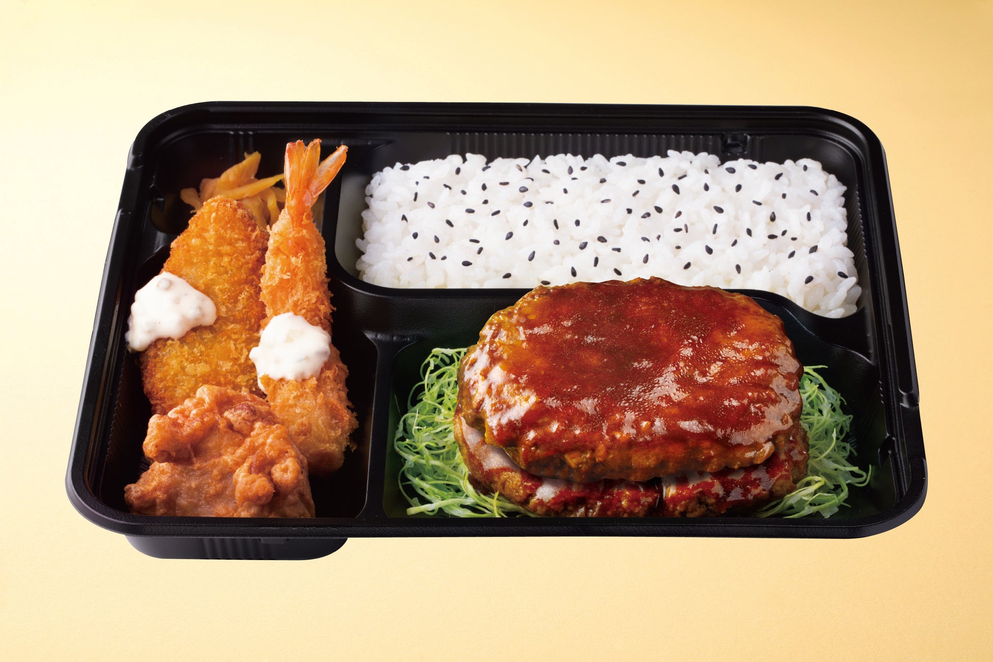 昨年もご好評をいただいた『倍バーグ大作戦!!』を、11月25日(月)10時から6日間の期間限定で開催します。オリジン人気の「直火焼デミハンバーグ弁当」に、プラス300円(税込価格324円)『ハンバーグ1個増しのW盛り』をご提供します。