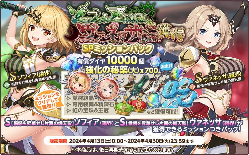 Sソフィア(鏡界)【憤怒を昇華せし片翼の熾天聖】&Sヴァネッサ(鏡界)【傲慢を昇華せし片翼の熾天聖】が獲得できるスペシャルミッションパックの販売を開始致しました。