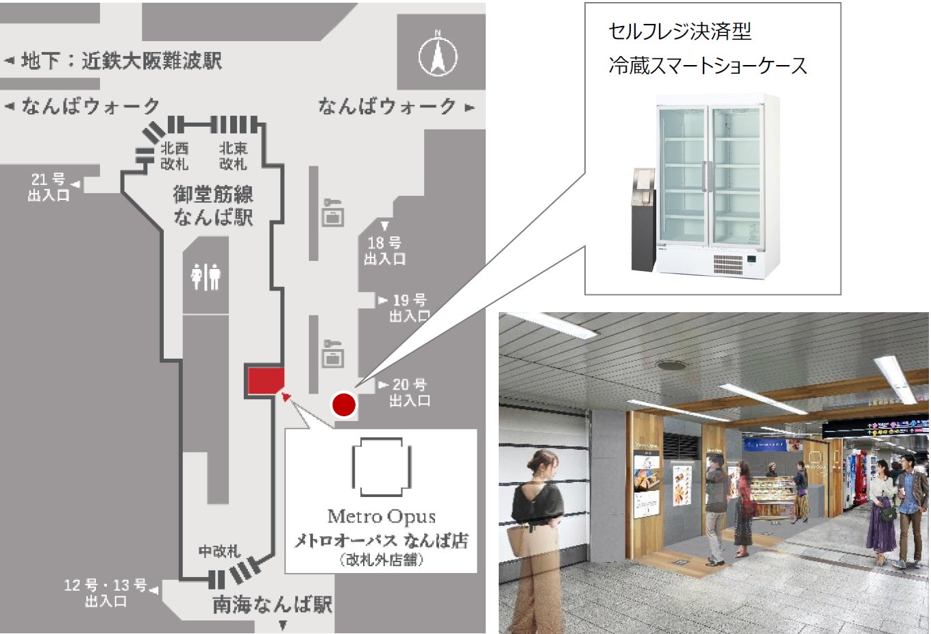Osaka Metro御堂筋線なんば駅において「セルフレジ決済型冷蔵スマートショーケース」による無人販売サービスの実証実験を実施