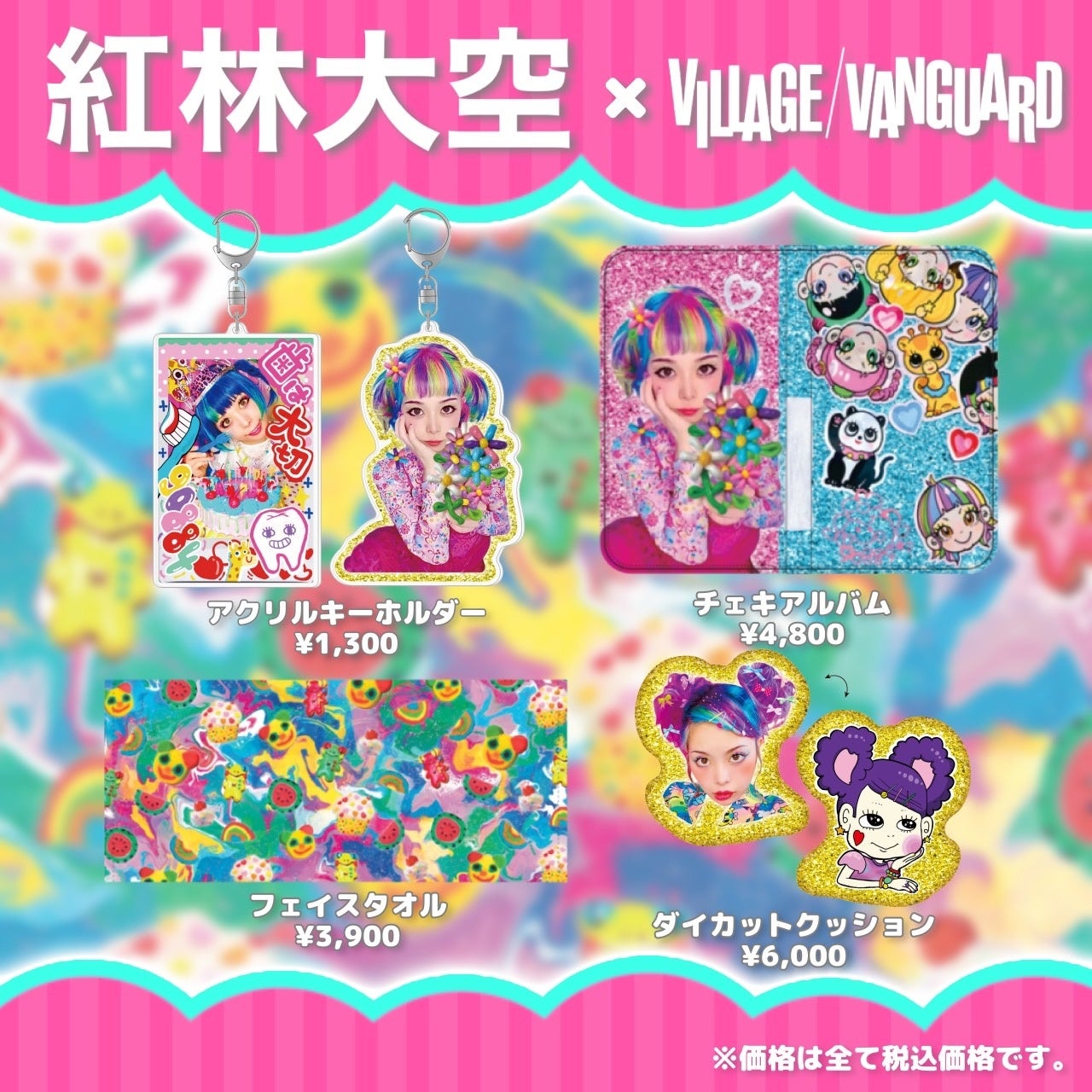 2023年7月7日(金)より、KAWAIIでインターナショナルに活躍するカラフルガール【紅林大空】とヴィレッジヴァンガードの限定コラボグッズが発売決定!ご本人がデザインしたこだわりのアイテムたちが登場!!!ヴィレッジヴァンガードオンラインストアで期間限定の受注販売となりますのでお買い逃しなく!