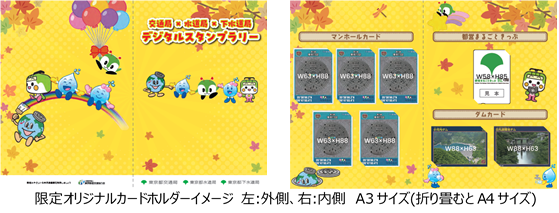 全スポット達成賞として、全員に3局のキャラクターがコラボレーションを果たしたオリジナルスマホ壁紙をプレゼント。更に、ご応募いただいた方の中から抽選で100名様に限定オリジナルカードホルダーとマンホールカード(3枚)をセットでプレゼントします。秋の行楽シーズンや冬休み最初のお出かけに、デジタルスタンプラリーをお楽しみください。