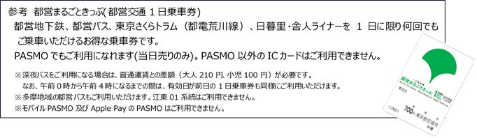 ・当日有効の「都営まるごときっぷ(都営交通共通1日乗車券)」