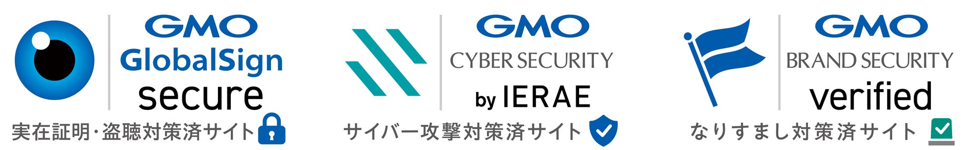 また、GMOインターネットグループではネットのセキュリティ対策を「見える化」する「GMO安心可視化サイトシール」を提供しています。これらは、GMOグローバルサイン株式会社の提供する「実在証明・盗聴対策済みサイト」の証明と、GMOサイバーセキュリティ byイエラエ株式会社の提供する「サイバー攻撃対策済みサイト」の証明シールがあり、この「GMOなりすまし対策シール」もその一環となります。GMOインターネットグループが持つセキュリティ技術を活用し、皆様に安心してインターネットをご利用いただける環境を提供してまいります。