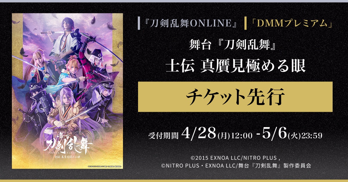 舞台『刀剣乱舞』士伝 真贋見極める眼『刀剣乱舞ONLINE』ゲーム内チケット先行&「DMMプレミアム」会員向けチケット先行の申し込み受付スタート