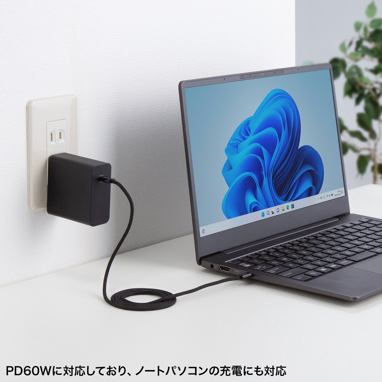 PD60Wの急速充電に対応しており、スマートフォンやタブレットだけでなく、ノートパソコンやNintendo Switchなどのゲーム機の充電にも対応しています。