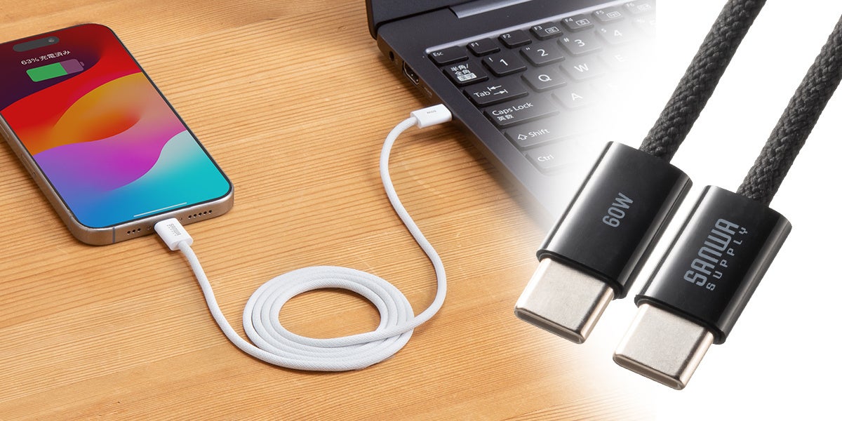 PD60W充電対応、しなやかで高耐久なType-Cシリコンメッシュケーブルを発売