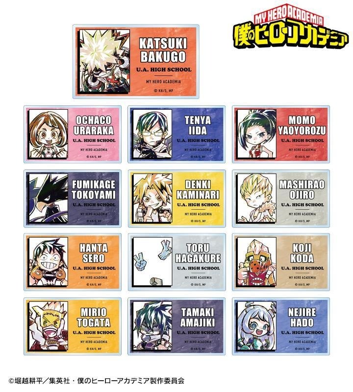 種類 :全13種(緑谷出久、爆豪勝己、麗日お茶子、飯田天哉、轟焦凍、蛙吹梅雨、切島鋭児郎、上鳴電気、耳郎響香、通形ミリオ、天喰環、波動ねじれ、相澤消太)