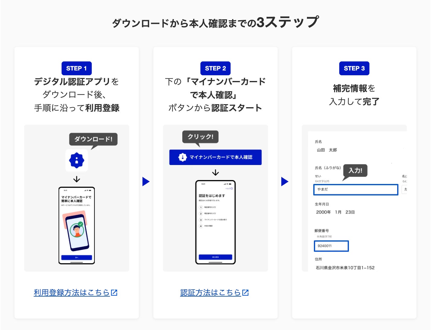 こうした状況を受け、本人確認におけるユーザーの手間を減らし、より快適にサービスをご利用いただくことを目的に、このたびデジタル庁が提供している「デジタル認証アプリ」を活用した本人確認に対応いたしました。