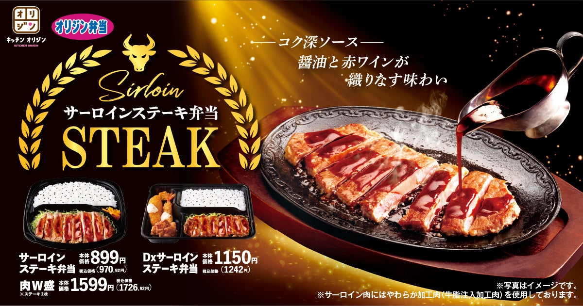 弁当・惣菜専門店「キッチンオリジン」「オリジン弁当」を展開しているイオングループのオリジン東秀株式会社(本社:東京都調布市/代表:後藤 雅之)は、12月2日(月)10時より、「サーロインステーキ弁当」を発売いたします。
