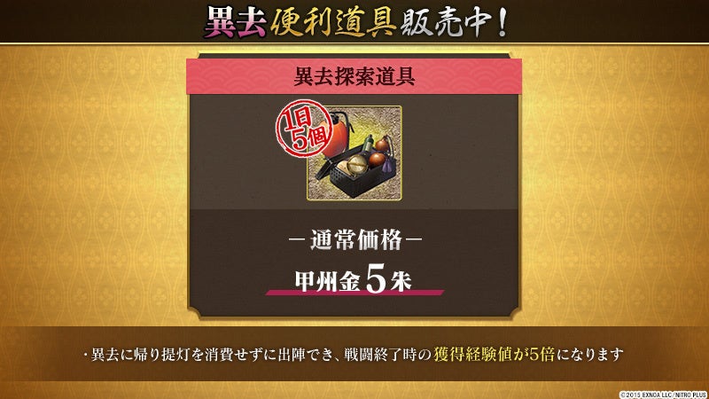 「異去」への出陣に使用できる専用便利道具を販売中です。この機会にぜひご利用ください。