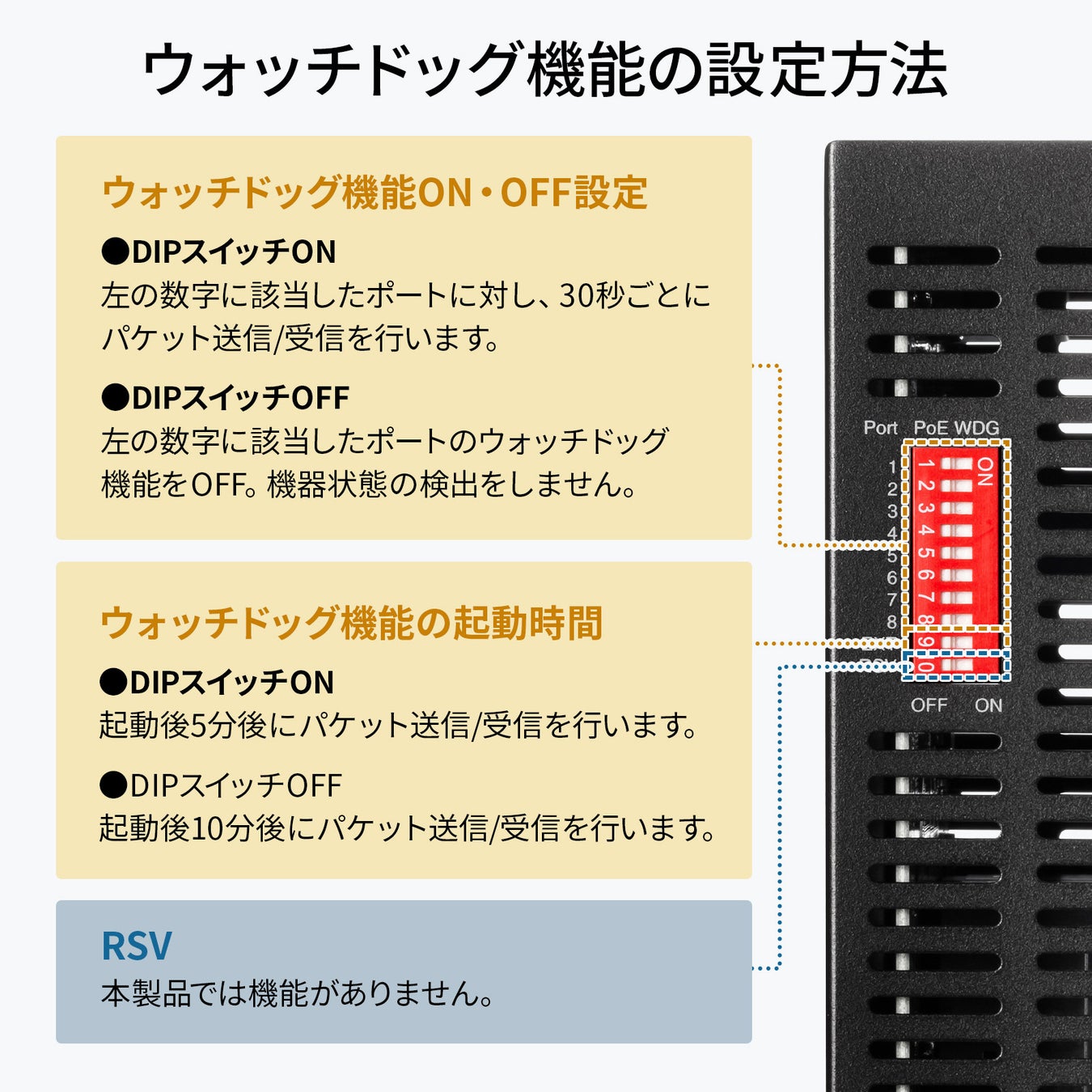 アンマネージドスイッチながら簡易的なウォッチドッグ機能(オートリブート機能付き)を搭載しています。