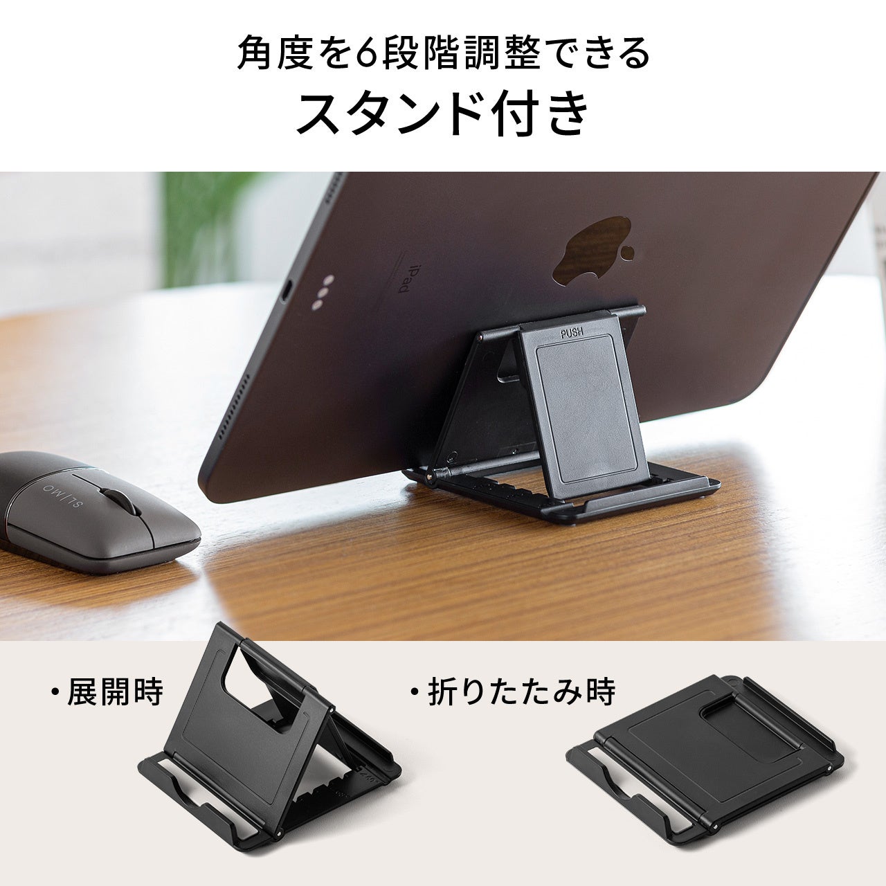 スタンドとマウスを一緒に持ち運べる便利なポーチ付き。
