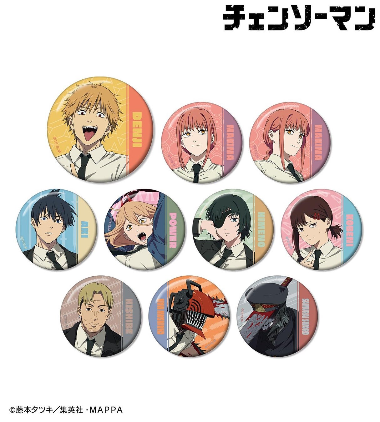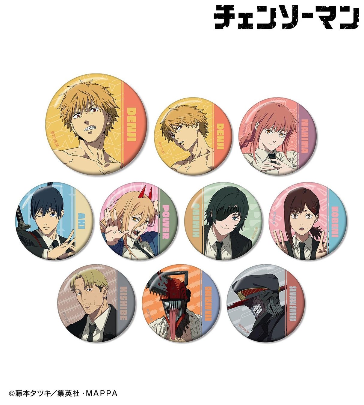 デンジ、マキマ、早川アキ、パワー、姫野、コベニ、岸辺、チェンソーマン、サムライソードをメインにキャラクターカラーとキャラクターモチーフを使用してデザインしました。