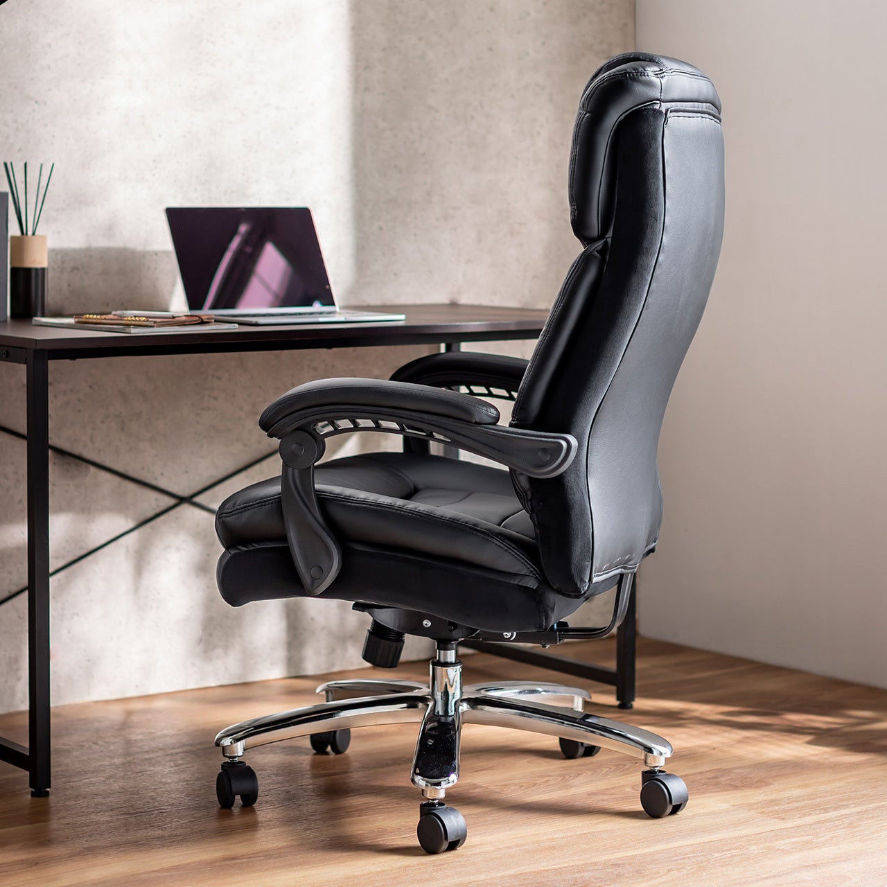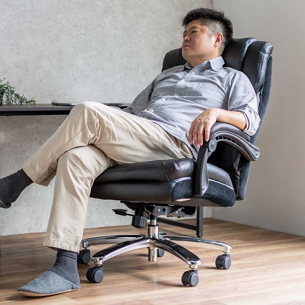 高耐荷重PUレザーチェア ハイバック 耐荷重200kg シンクロロッキングを6月4日に発売