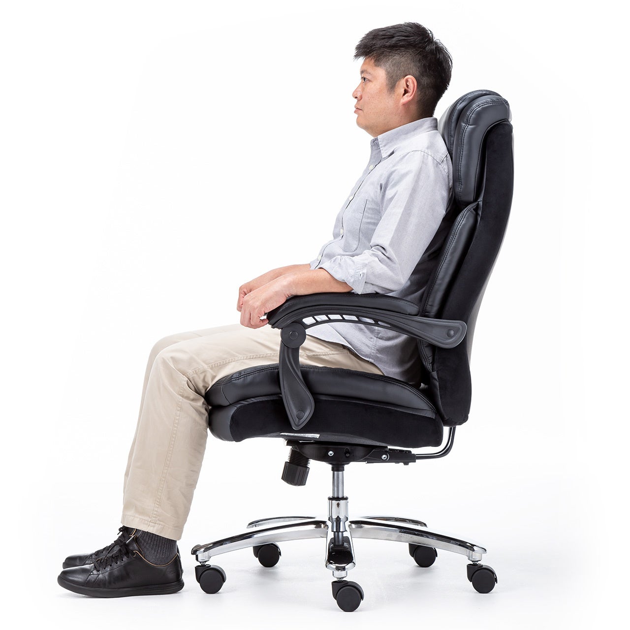 レザーチェア 高耐荷重チェア ハイバックチェア 耐荷重200kg PUレザー シンクロロッキング