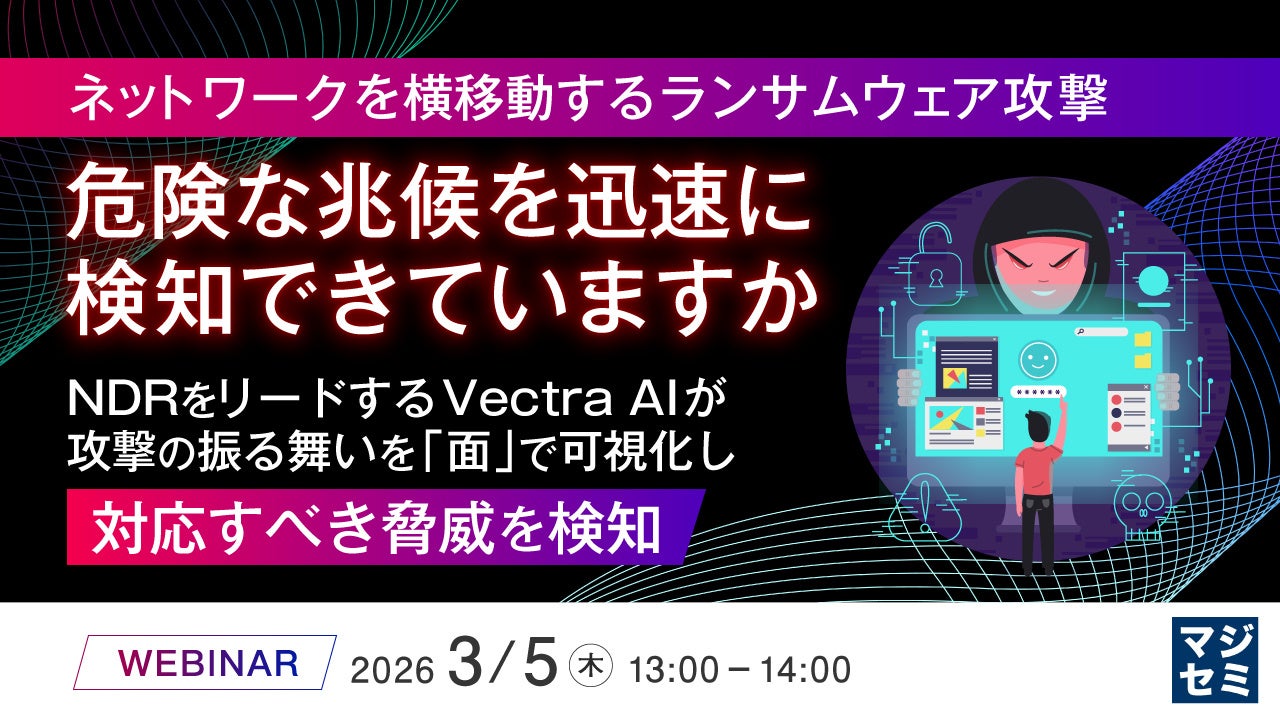 マジセミ株式会社は「ネットワークを横移動するランサムウェア攻撃、危険な兆候を迅速に検知できていますか」というテーマのウェビナーを開催します。