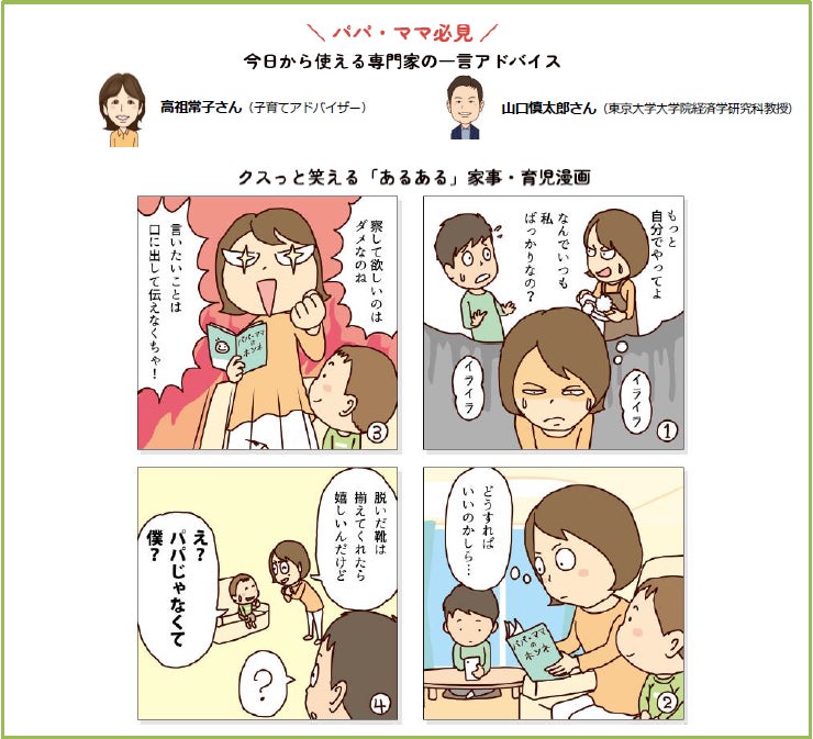 高祖常子さん(子育てアドバイザー)と山口慎太郎さん(東京大学大学院経済学研究科教授)の協力のもと、今回の調査結果から浮かび上がった家事・育児における男女の意識差やホンネ、育業等の実態を紐解き、今日から使える一言アドバイスをレポートにまとめました!