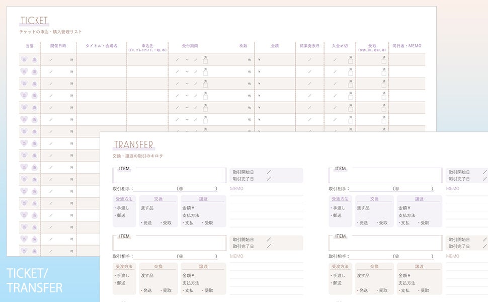 アイドル、俳優、声優、キャラクター、動画配信者、タレント、スポーツチームなど、さまざまな好きなものを応援する「推し活」は、幅広い世代が楽しみ大きな盛り上がりを見せています。本手帳はそんな「推し」を応援している人のための手帳で、思い出のキロクも予定や取引の管理も1冊でできる手帳となっています。大量のスケジュールや申込内容をスッキリ管理できるページ、推しへの思いや活動のキロクを書けるページを用意し、推し活ライフをしっかりサポートします。