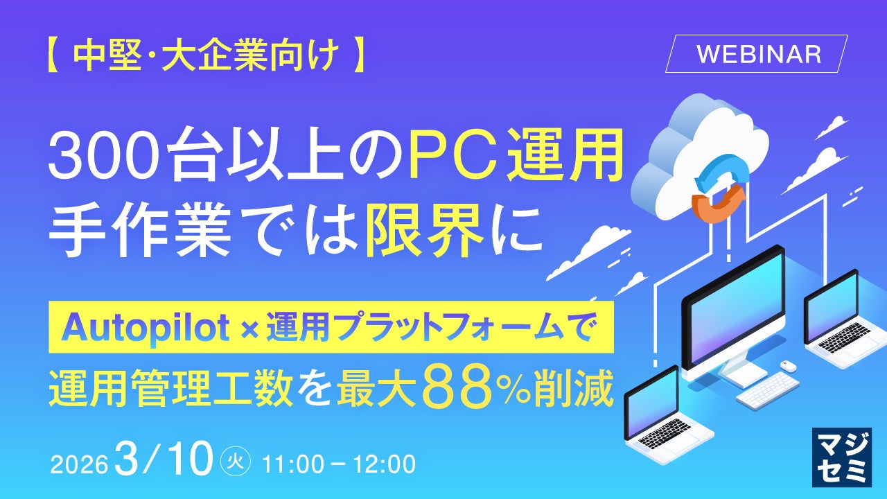マジセミ株式会社は「【中堅・大企業向け】300台以上のPC運用、手作業では限界に」というテーマのウェビナーを開催します。