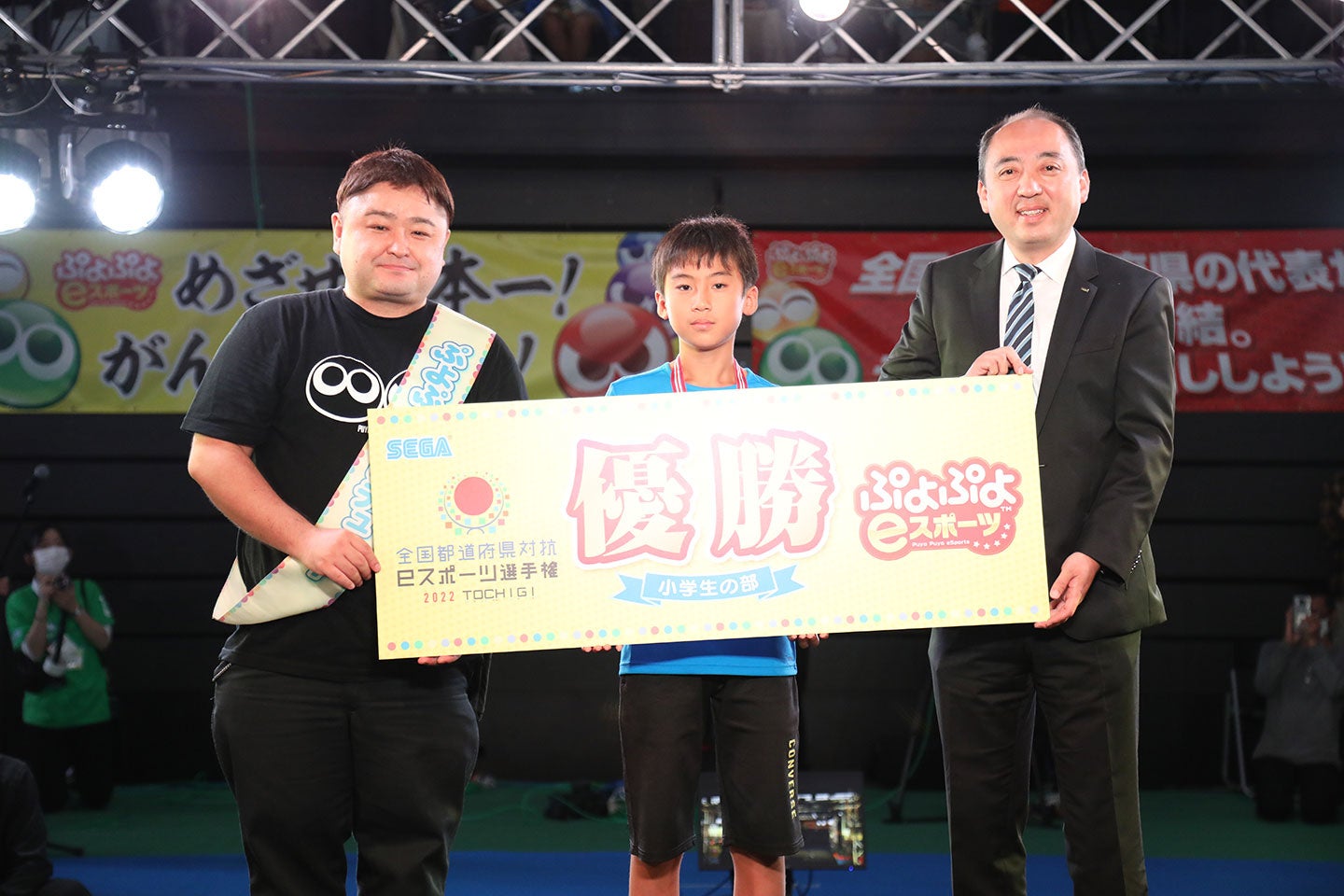 株式会社セガは、ジャパン・eスポーツ・プロライセンス認定タイトルである、対戦アクションパズルゲーム「ぷよぷよ」シリーズについて、2022年10月15日(土)、16日(日)に栃木県・日環アリーナ栃木で開催した、栃木本大会(決勝大会)、第77回国民体育大会「いちご一会とちぎ国体」・第22回全国障害者スポーツ大会「いちご一会とちぎ大会」文化プログラム「全国都道府県対抗eスポーツ選手権 2022 TOCHIGI ぷよぷよ部門」にて、「小学生の部」で大阪府代表の柊選手、「一般の部」で東京都代表のともくん選手が優勝したことをお知らせいたします。