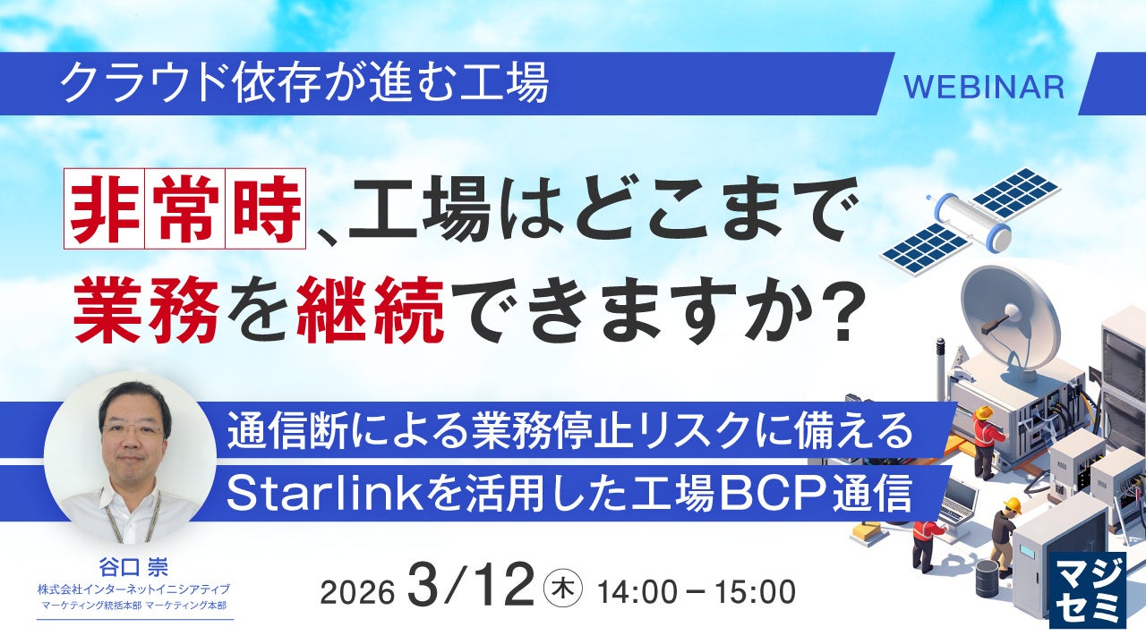 マジセミ株式会社は「【クラウド依存が進む工場】非常時、工場はどこまで業務を継続できますか?」というテーマのウェビナーを開催します。