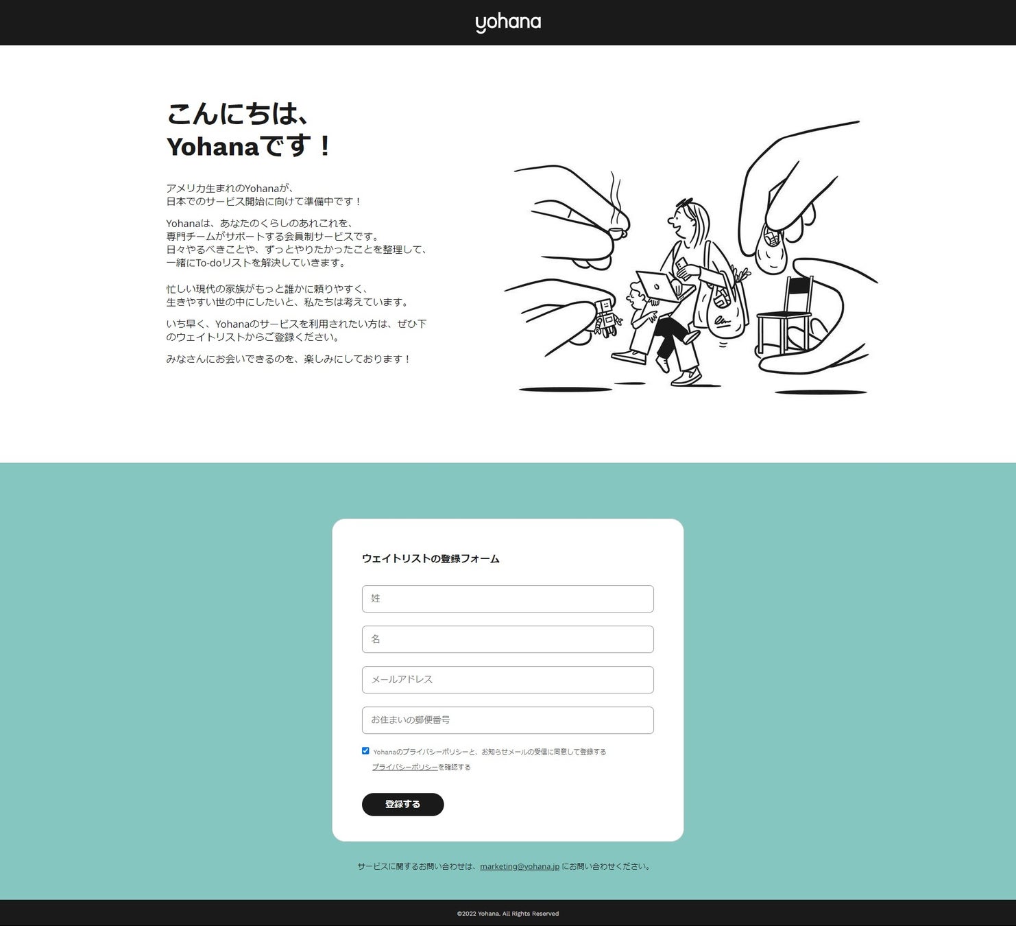 パナソニック ホールディングス株式会社(以下、パナソニックHD)の子会社Yohana株式会社(以下、Yohana)は、「Yohanaメンバーシップ」の日本展開を決定し、2022年7月29日に「ウェイトリスト」を公開しました。「Yohanaメンバーシップ」は、現代の家族の大切な時間の創出を目指し、お客様一人ひとりのくらしの中にある潜在ニーズや課題を、「ヒューマンパワー」と「テクノロジー」を使って見つけ出し、外部のプロのパートナーとも連携して解決するサービスです。