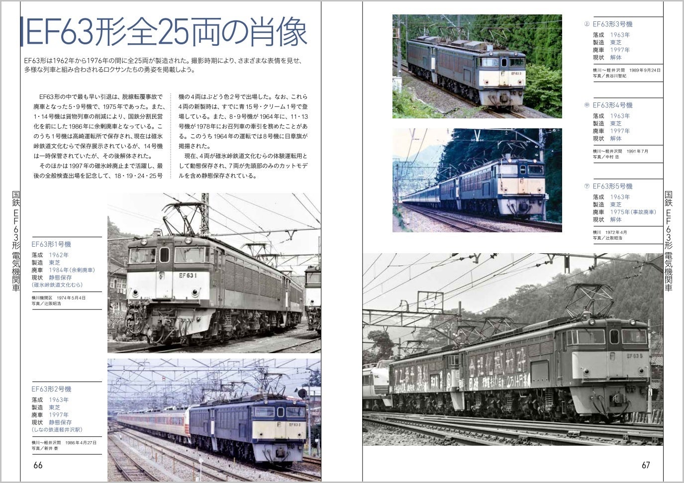 第1章ではEF63形を詳しく解説。資料と現役時代の写真、そして撮り下ろし写真を交えた構成は、動態保存機があるからこそ可能です。国鉄屈指の重装備機関車を改めてご覧ください。
