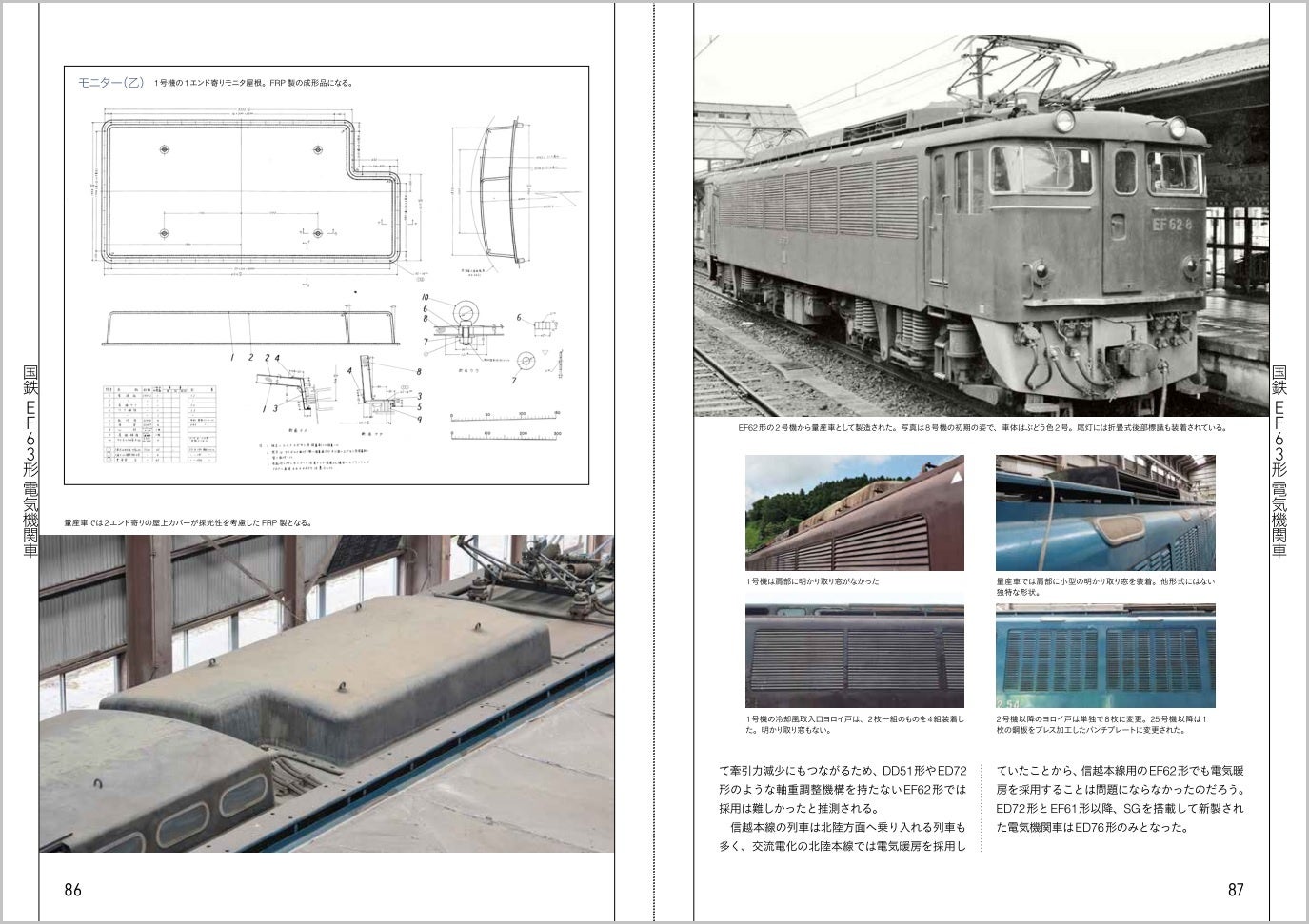 第2章では、EF62形電気機関車を解説。「碓氷峠鉄道文化むら」で保存されている54号機を取材しました。運転室と、特徴ある屋根を中心に、ディテールをお見せします。