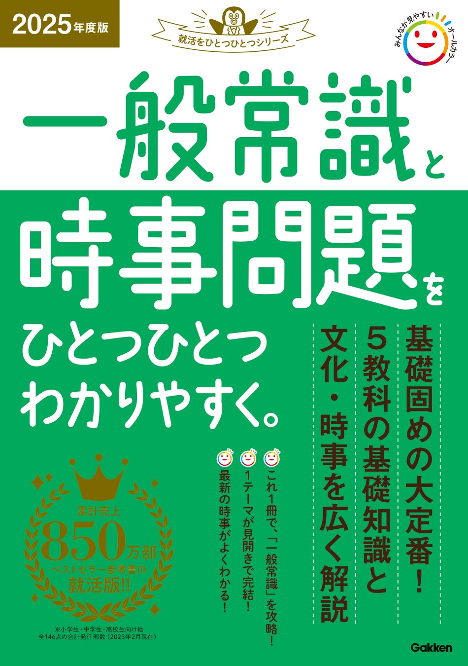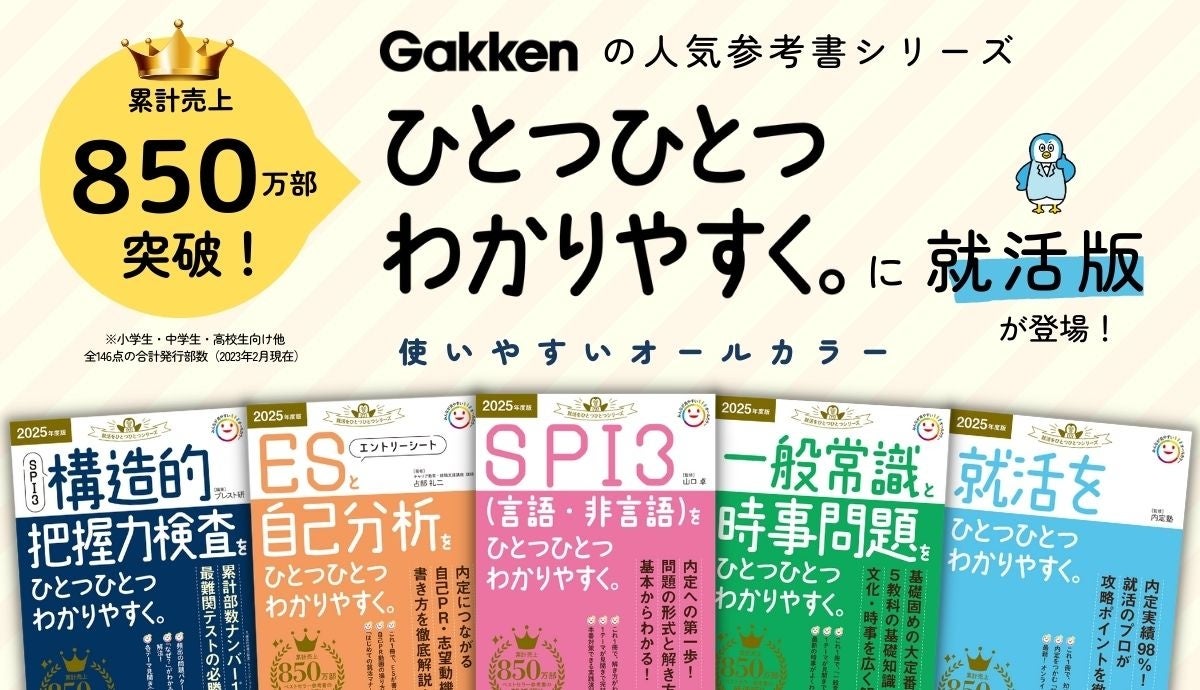 株式会社 学研ホールディングス(東京・品川/代表取締役社長:宮原博昭)のグループ会社、株式会社 Gakken(東京・品川/代表取締役社長:五郎丸徹)は、「就活をひとつひとつ」シリーズを創刊し、『就活』『エントリーシートと自己分析』『SPI3(言語・非言語)』『一般常識と時事問題』『SPI3 構造的把握力検査』の5点を2023年2月28日(火)に同時発売いたします。