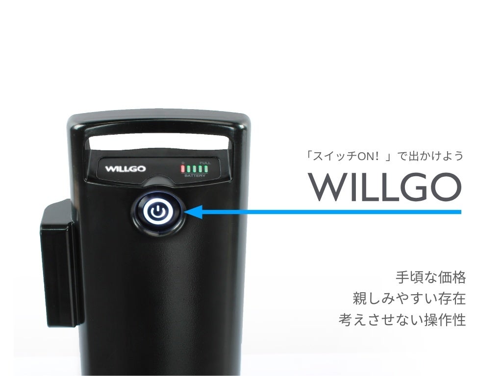 新発売のイオンバイクオリジナル電動アシスト自転車「WILLGO」は、本体価格80,000円というお求めやすい価格とともに、バッテリーの電源スイッチ一つだけのシンプルな設計で、お客さまが身近に「スイッチONですぐに走り出せる快適な電動アシスト自転車生活」を感じられる新レーベルです。