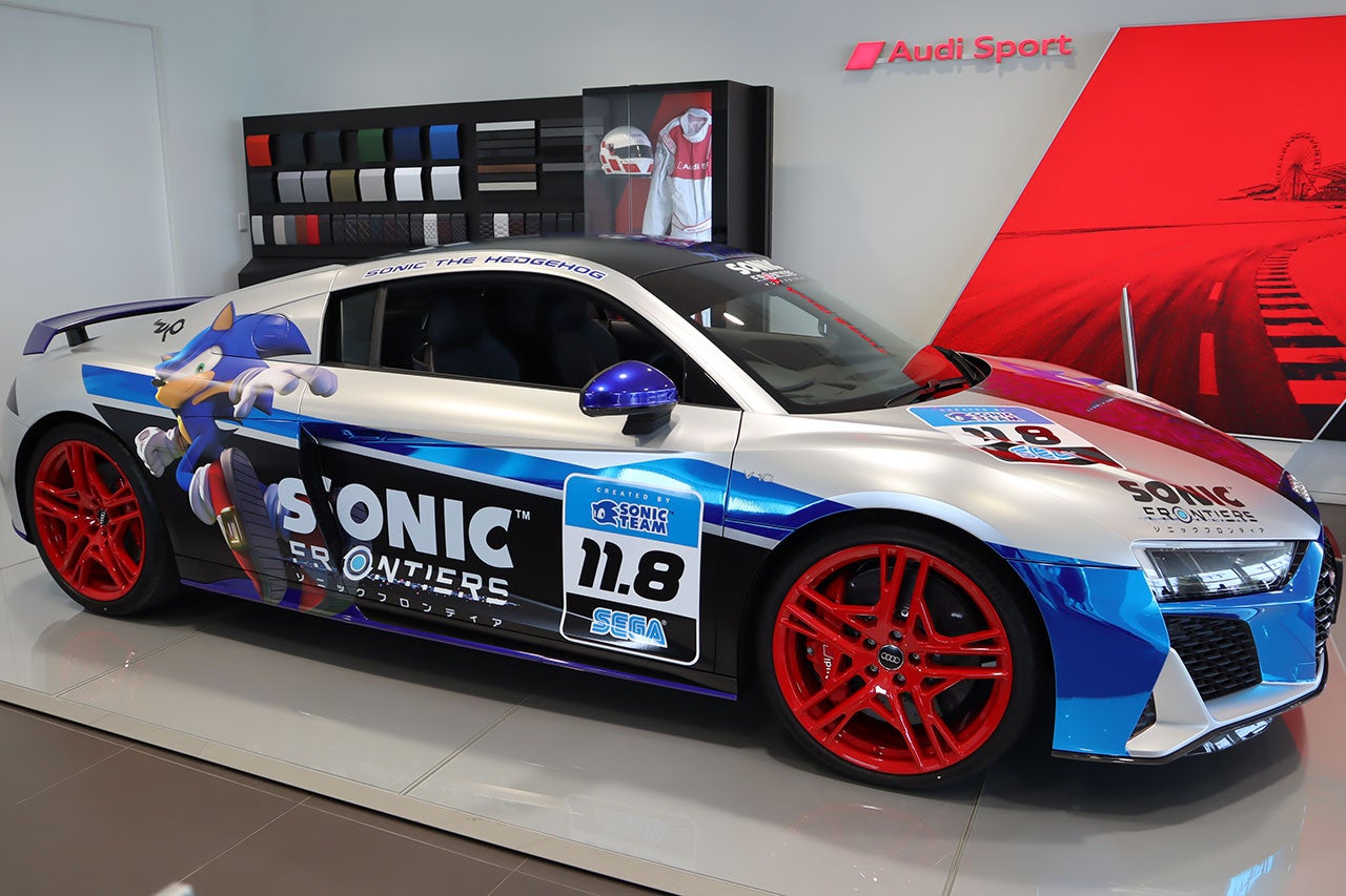 株式会社セガは、2022年11月8日(火)発売予定のPlayStation®5/PlayStation®4/Nintendo Switch™/Xbox Series X|S/Xbox One/PC(Steam)用ソフト『ソニックフロンティア』のスペシャルラッピングカーを制作。本体価格 32,330,000円(※メーカーオプション込 新車車両価格)の”Audi R8 Coupé V10 performance 5.2FSI quattro S tronic”を、世界で一つだけの『ソニックフロンティア』オリジナルデザインでラッピングしました。2022年10月22日(土)、23日(日)に各務原市民公園(岐阜県各務原市那加門前町3丁目)で行われるエンターテインメントイベント「全国エンタメまつり」を皮切りに、都内でも特別展示を行う予定です。