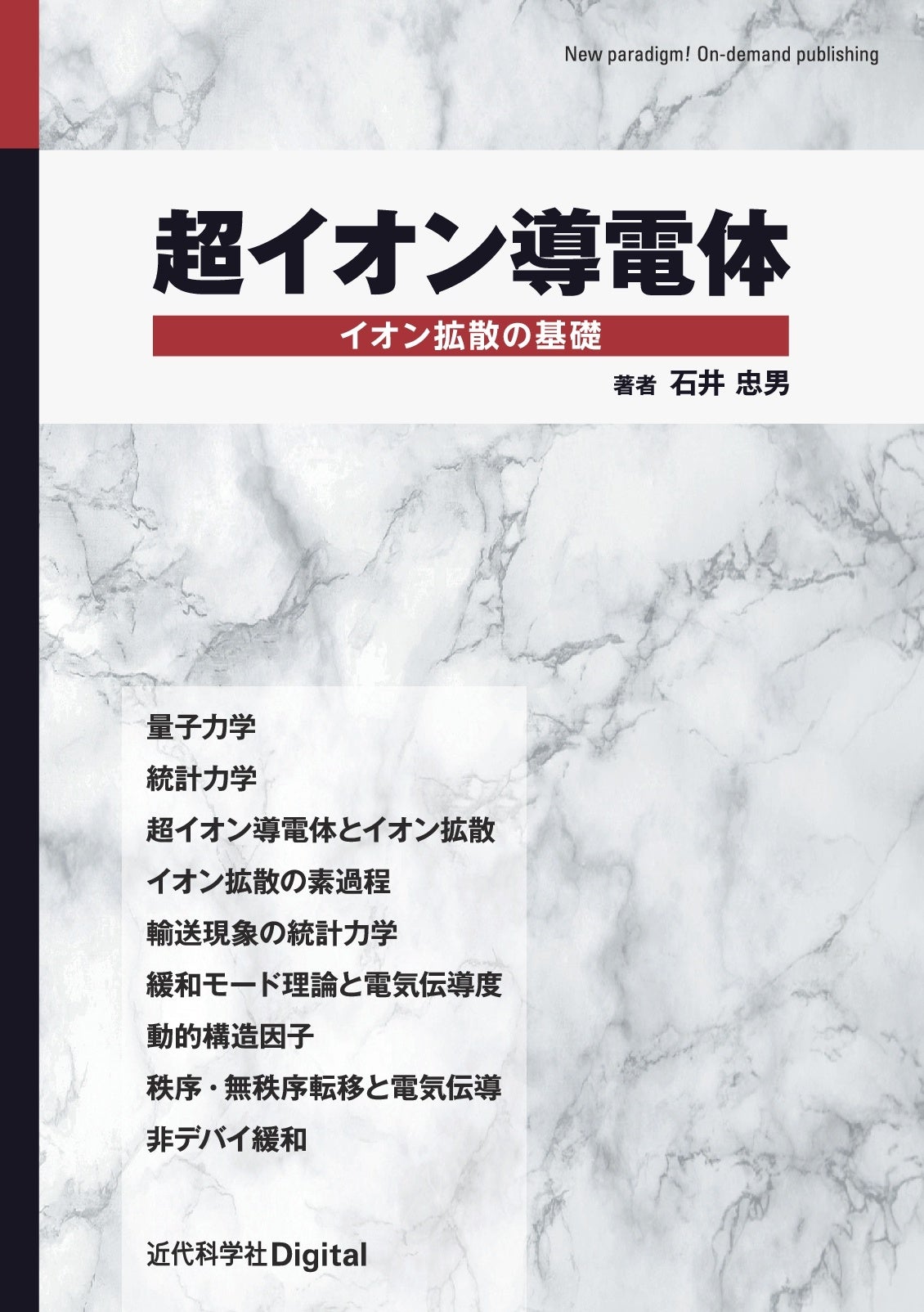 インプレスグループで理工学分野の専門書出版事業を手掛ける株式会社近代科学社は、2022年9月16日に、近代科学社Digitalレーベル(※)より、『超イオン導電体―イオン拡散の基礎―』(著者:⽯井 忠男)を発行いたしました。