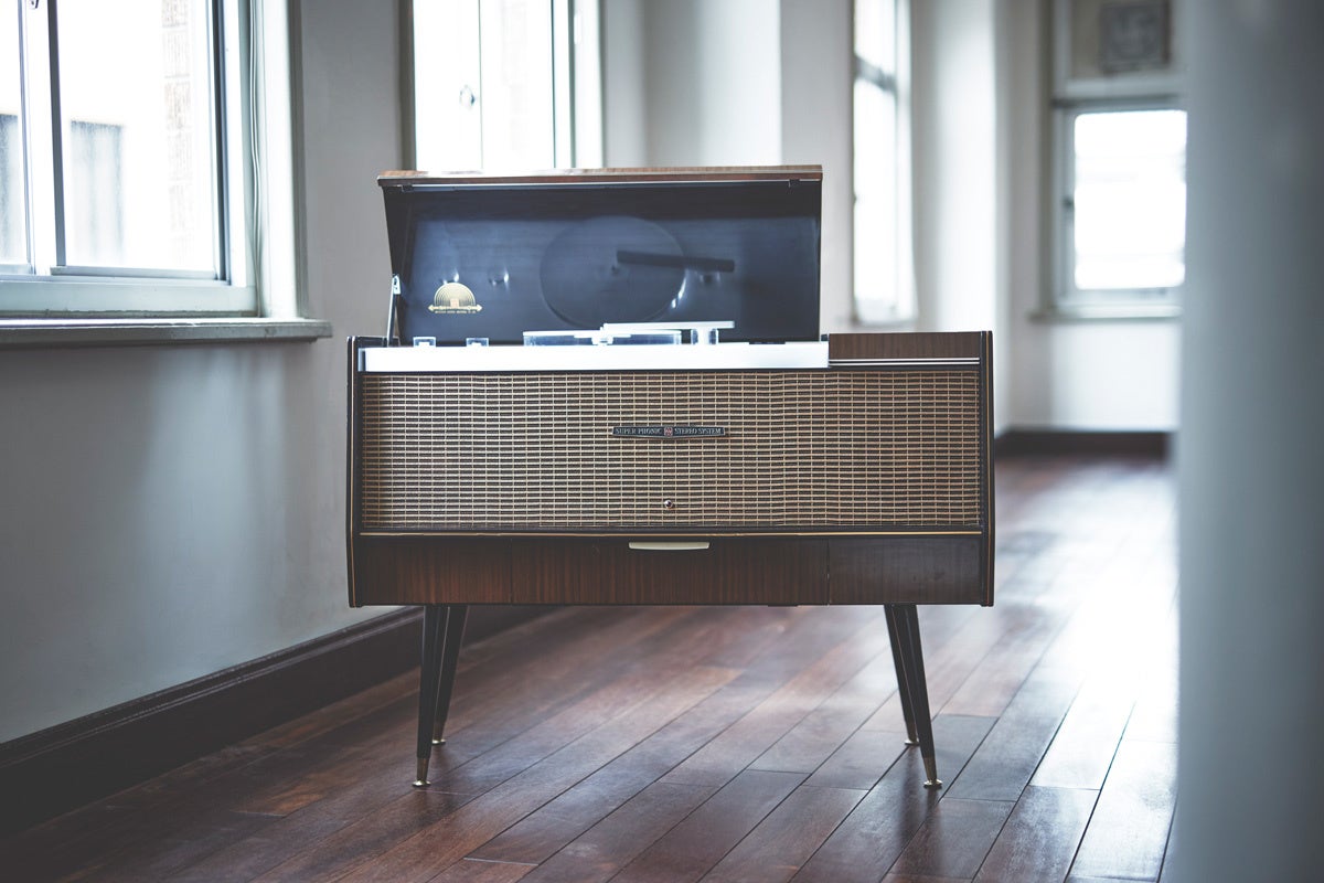 パナソニックグループでは、歴史的な自社製品を数多く収蔵・保管し、記録と伝承に活用しています。収蔵品の中には部分的にパーツが失われているものもあり、今回このベースとなったスーパーフォニックステレオHE-3000(1962年発売)も、レコードプレイヤー部分がない状態で収蔵庫に長年保管されていました。