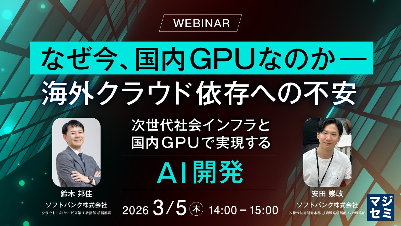 マジセミ株式会社は「なぜ今、国内GPUなのか ― 海外クラウド依存への不安」というテーマのウェビナーを開催します。